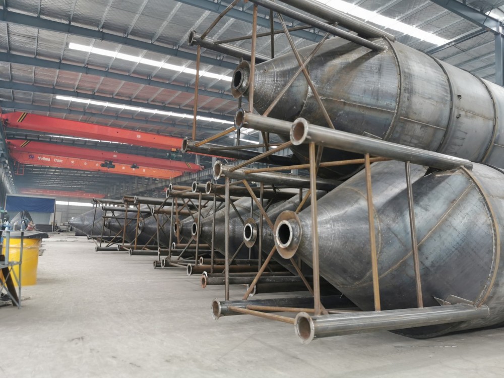 水泥倉(cāng)為攪拌站專(zhuān)用的物料存儲(chǔ)設(shè)備,在整個(gè)混凝土攪拌站生產(chǎn)中中占有重要的作用,近年來(lái)水泥倉(cāng)在工業(yè)建筑,城市建設(shè),道路橋梁水利及構(gòu)件廠等施工中散水泥等散料的儲(chǔ)備料倉(cāng),還可用于攪拌站散水泥儲(chǔ)備的配料設(shè)備?! ∷鄠}(cāng)大體分為上、中、下三部分,其上面主要由是頂端、除塵器、護(hù)欄、人孔組成,頂端就是水泥罐的封頂